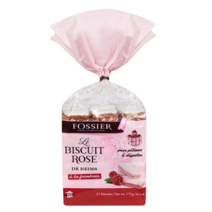 Soy el fruto del encuentro de dos de las galletas más famosas. La de mantequilla salada de Bretaña y la rosa de vainilla de Champagne. Soy crujiente con sabor a frambuesa. Mi formato pequeño es ideal para una pausa golosa.